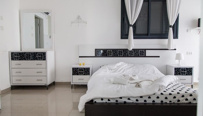 בכל חדר שינה מיטה זוגית גדולה עם מזרן אורתופדי, בסלון ספה נוחה לצד פינת אוכל ובמטבח יש מקרר, בר מים, תנור אפייה, קומקום, מיקרוגל כיריים ופינת קפה.