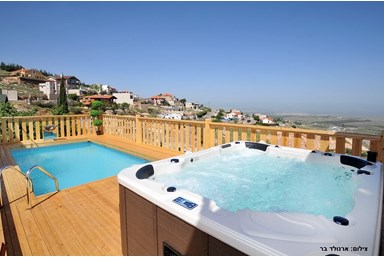 המתחם החיצוני של הוילה כולל בריכה שחייה גדולה הניתנת לחימום בימי החורף הקרים, יחד עם שולחנות סנוקר ופינג פונג, ג'קוזי ספא מפנק, פינות ישיבה מגוונות עם ריהוט גן אלגנטי הכולל מיטות שיזוף מתכווננות, כסאות וערסלים בנוסף לפינת הברבקיו בה תוכלו להכין מטעמים באוויר הפתוח לשאר הנופשים בוילה וכל זה מול הנופים הקסומים של הגליל המקיפים אתכם.